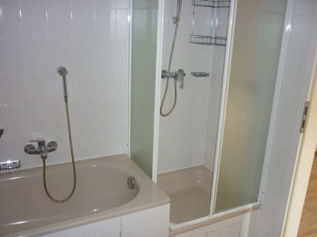 Die duschen werden von zwei wohneinheiten gemeinsam genutzt.